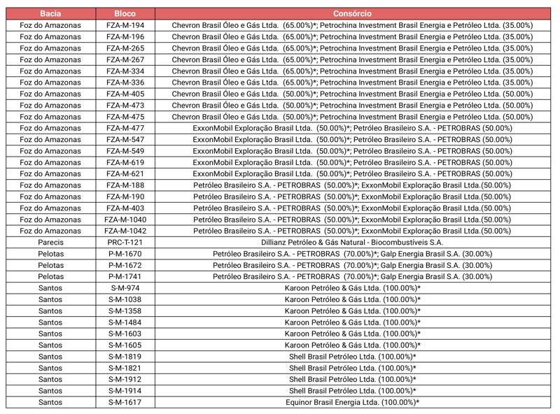 Veja, abaixo, a relação com os 34 blocos e consórcios vencedores: